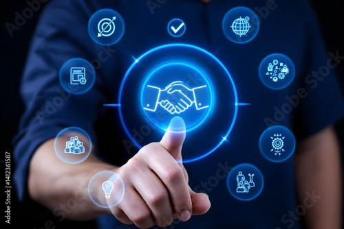 Business Cooperation and Trust Concept – Digital Handshake Between Partners Symbolizing Teamwork, Reliability, and Corporate Success
