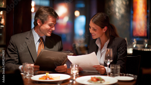 couple, man, woman, dining, eatery, menu, discussion, evening, business, meal, food, table, luxury, together, intimate, smiling, asian, black, professional, elegant, indoor, glasses, wine, candlelight, relaxation, conversation, atmosphere, date, business meeting, negotiation, eating, order, client, modern, romance, appetiser, cookery, upscale, partnership, food photography, culinary, presentation, fine dining, lifestyle, happiness, connection