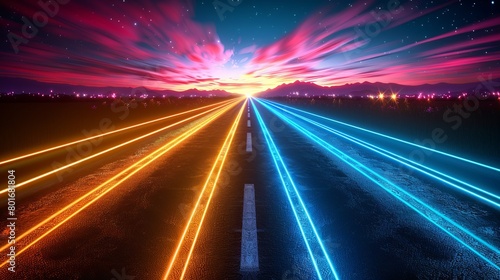 Business data analytic with intelligent software isolated in dark background, with glowing colorful line of transportation, concept of technology business and network