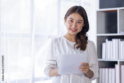 Business Documents, Auditor businesswoman checking searching document legal prepare paperwork or report for analysis TAX,Asian woman accountant Documents data contract partner deal in workplace office