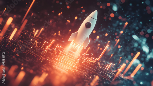 business graph with a rocket flying upwards, representing startup success and financial statistics.business graph with a rocket launch, the journey of startups and financial growth,