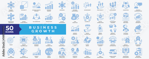 Business Growth icon set with market expansion, scalability, strategy, business development, improvement, collaboration, productivity, change management, growth and product development