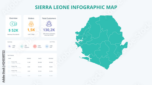 Business Growth Infographic Map of Sierra Leone. Orders, Customers, Sales Overview & product Infographic Map of Sierra Leone. Easy to edit