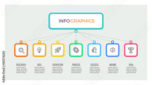 Business hierarchy infographic. Organization chart with 7 options. Vector template.