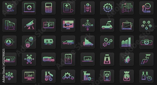 graphic, vector graphics, infographic, calculating machine, computer, laptop, truck, bus, car, money bag, success, progress, teamwork, connectivity, strategy, planning, process, management, design element, high-quality