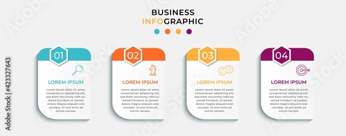 Business Infographic design template Vector with icons and 4 options or steps. Can be used for process diagram, presentations, workflow layout, banner, flow chart, info graph