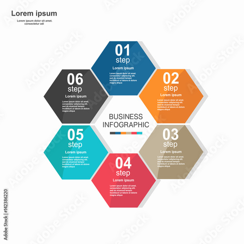 Business infographic hexagon in flat design. Layout for your options or steps