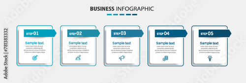 Business infographic template with 5 options or steps. Can be used for workflow layout, diagram, annual report, web design