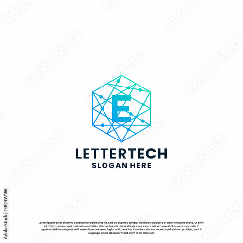 business letter E logo design for technology, lab, science, computing company