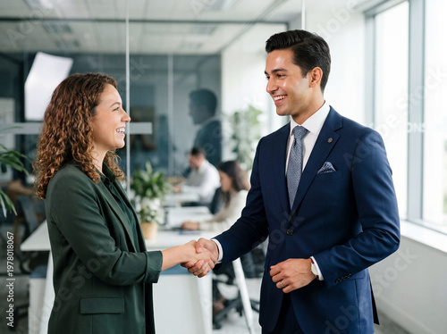 handshake, business, agreements, office, man, woman, partnership, meeting, collaboration, professional, deal, success, corporate, colleague, introduction, greeting, happy, smiling, confident, diverse, modern, workspace, indoor, executive, career, job, trust, welcome, acquisition, congratulation, respect, cooperation, connection, communication, human relationships, formal, successful, employee