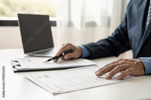 Business man employer holding resume hiring recruit looking cv resume to hire candidates, analyzing information before job interview. Recruitment concepts