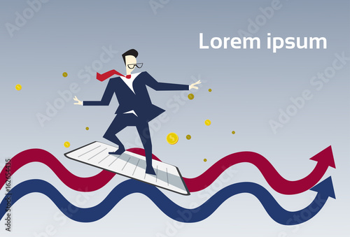 Business Man Ride Arrows Financial Success Concept Flat Vector Illustration