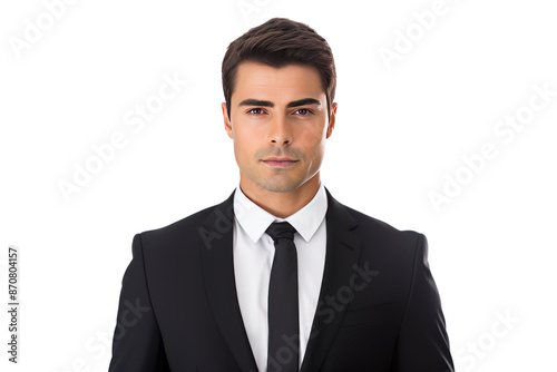 business man wearing a suit Appear confident, serious, and ready to work. Look confidently at the camera on a white background