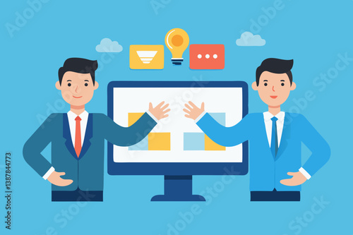 business, businessman, cartoon, vector, people, office, illustration, icon, computer, concept, cyberspace, success, man, work, person, technology, talking, idea, flat, hand, job, mobile, communication, design, phone