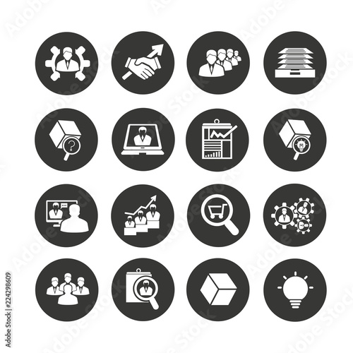 business management icon set in circle button