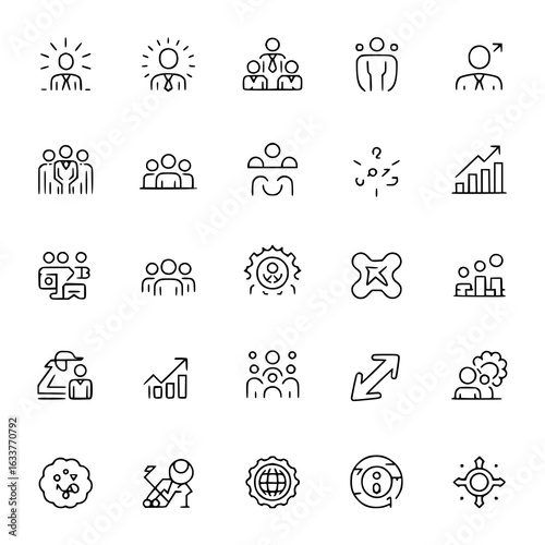 business, management, teamwork, leadership, growth, collaboration, strategy, icon, vector, people, graph, chart, gear, light bulb, idea, innovation, global, network, connection, meeting, presentation, organisation, hierarchy, skill, training, coaching, development, success, achievement, goal, target, performance, analysis, communication, marketing, human resources, office, work, employee, employer, career, professional, simple, minimal, website, app