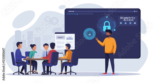 business, meeting, technology, biometric, access, security, innovation, digital, professional, collaboration, modern, office, vector, minimalist, design, presentation, future, datum, id, system, advanced, conference, team, development