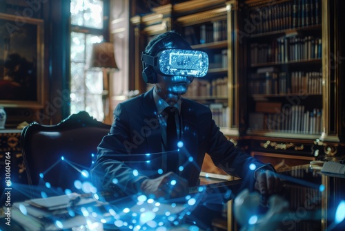 Business meeting conference with virtual reality glasses , future technology ,Genesis AI