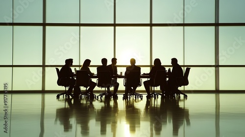 Business Meeting in Office: A group of professionals sitting around a conference table during a business meeting.