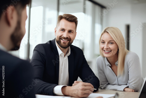 business, meeting, people, office, businessman, businesswoman, woman, team, teamwork, work, job, professional, businessperson, manager, smiling, talking, interview, group, 2, working, sitting, executive, colleague, computer, table