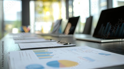 Business Meeting Setup with Charts and Laptops
