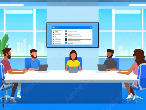 meeting, team, office, people, group, business, work, presentation, screen, laptop, technology, project, collaboration, discussion, desk, chair, room, workspace, modern, corporate, professional, employee, colleague, communication, digital, display, monitor, plan, strategy, success, innovation, sharpened, efficiency, productivity, motivation, leadership, teamwork