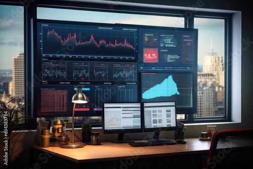 Business Office with Trade UI, great design for any purposes. Trade concept. Web site screen template. Forex market, news and analysis. binary option. Application for investment and online trading .