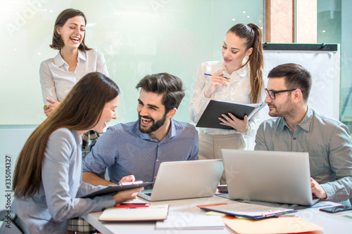meeting, business, people, team, office, presentation, laptop, professional, talking, technology, brainstorming, business plan, businessman, businesswoman, caucasian, colleague, communication, conference, conference room, corporate, co-worker, discussion, female, group, indoor, man, occupation, partner, sitting, standing, strategy, table, teamwork, woman, working, workplace, young adult, computer, modern, success, cooperation, professional occupation, smiling, cheerful, happy, leadership, partnership
