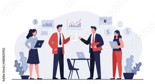 business, presentation, discussion, team, people, office, document, technology, collaboration, meeting, work, professional, communication, analysis, graph, chart, datum, laptop, tablet, red, blue, modern, flat, illustration, design, sharing, information, beautiful, colourful, bright, creative, elegant, stylish, decorative, vibrant, stunning, amazing, marvellously, fantastic, gorgeous, lovely, charming, attractive, impressive, spectacular