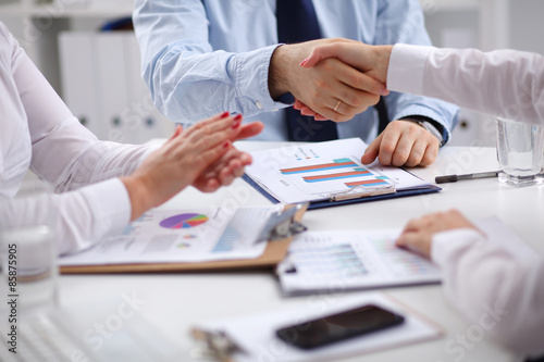 business, desk, businessman, laptop, isolated, table, handshake, document, partner, white, corporate, sitting, adult, teamwork, partnership, male, cooperation, people, men at work, female, technology, computer, team, portrait, smile, human relationships, businessperson, woman, group, person, businesswoman, paper, meeting, looking, working, background, job, office, man, communication