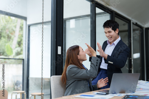 business, success, office, teamwork, celebration, high, 5, work, corporate, achievement, job, happy, motivation, togetherness, partnership, goal, colleague, professional, career, businessperson, executive, manager, employee, project, meeting, agreements, support, encouragement, accomplishment, winning, cheerful, enthusiasm, oneness, collaboration, cooperation, inspire, congratulate, deal, laptop, computer, desk, document, modern, window, indoor, man, woman
