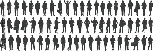 Business people silhouettes, standing, walking, talking, office, teamwork, professional, group, men, women, isolated, black, vector, meeting, discussion,