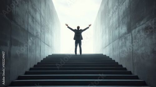 people, outdoors, business, happiness, lifestyle, man, success, stair, step, mention, victory, struggle, hard work, leadership, racked, creative, concept, background, competition, businessperson, leader, silhouette, back, lift, celebrate, joy, effort, hardship, arm, challenge, promotion, achievement, businessman, stair, staircase, woman, door, up, dark, abstract, person, sky, suit, standing, tunnel, job