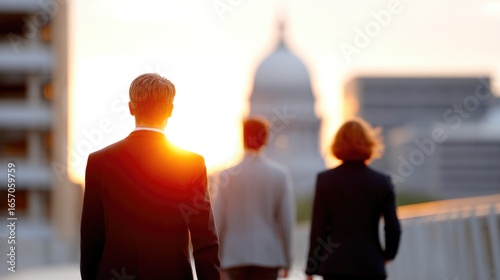 business, people, city, walking, urban, sunrise, professional, work, success, modern, skyline, corporate, office, teamwork, silhouette, morning, future, colleague, leadership, outdoors