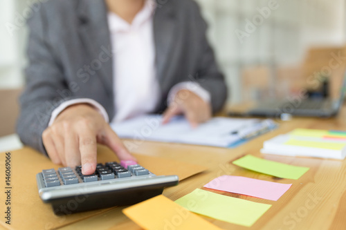 Business person using a calculator to calculate the numbers. Accounting , Accountancy, Calculation Concept.