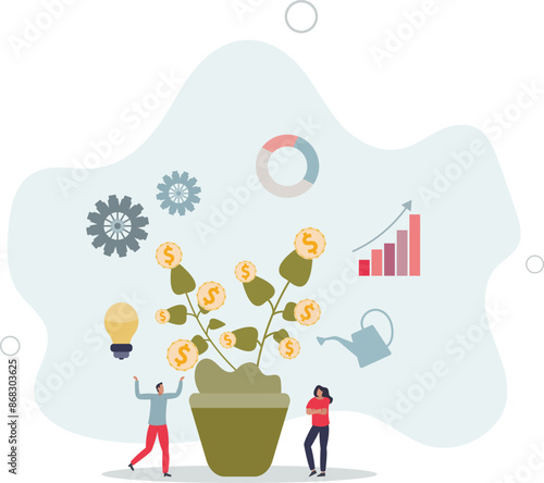 Business plan strategy with profit growth and development.Earnings management after financial money.flat design.illustration with people.