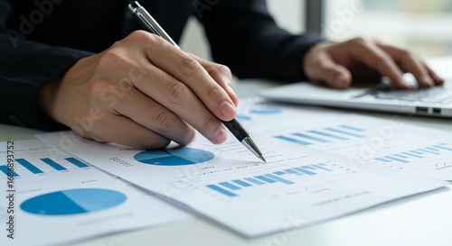 business, professional, analysing, chart, graph, datum, pen, laptop, office, indoor, working, finance, report, document, paper, desk, hand, writing, reviewing, planning, strategy, meeting, teamwork, success, growth, investment, economy, market, analysis, spreadsheet, statistic, businessperson, corporate, management, research, decision