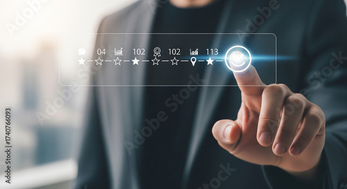 hand, digital, interface, feedback, satisfaction, review, rating, touching, technology, virtual, screen, pressing, selecting, interaction, business, professional, one person, adult, service, quality, evaluation, concept, modern, innovation, future, online, closeup, indoor, day, success, performance, survey, good, excellent, positive, user, datum, display, marketing, communication, network, achievement, management