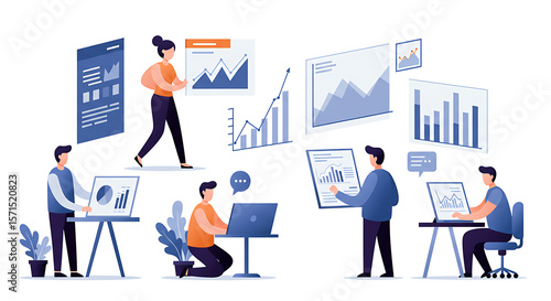 analysis, business, datum, chart, graph, report, information, finance, marketing, strategy, growth, success, teamwork, planning, management, investment, progress, presentation, meeting, communication, technology, digital, screen, laptop, monitor, vector, illustration, isolated, modern, concept, design, visual, online, workspace, diagram, interface, network, workflow