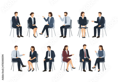 Business professionals engaged in interviews and discussions isolated on transparent background