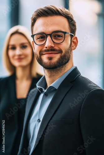 business, professional, teamwork, confidence, smiling, office, corporate, partnership, goggles, suit, beard, coiffure, background, city landscape, collaboration, modern, elegant, abstract, leadership, interaction, workplace, fashion, positivity, sex, business meeting, communication, friendly, stylish, blurred, portrait, self-assured, businesswoman, team, oneness, motivation, presentation, sophisticated, environment, networking, adult, smart, young, professional, success