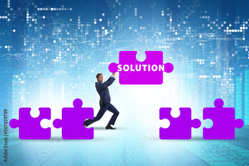 Business solution concept with jigsaw puzzle pieces