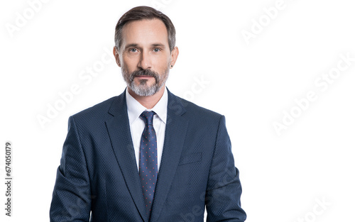 Business success man isolated on white. Successful partnership. Business team success. Advertising for businessman success. Financial successful deal. businessman in suit with copy space