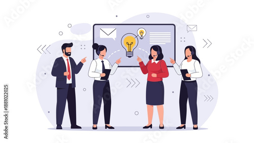 business, meeting, teamwork, collaboration, idea, generation, brainstorming, session, light bulb, concept, presentation, board, communication, icon, strategy, planning, office, men at work, professional, team, corporate, discussion, innovation, startup, problem, solving, creative, thinking, people, group