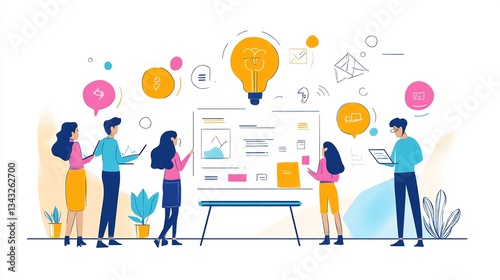Business team developing brand messaging strategy collaborative brainstorming creative concepts