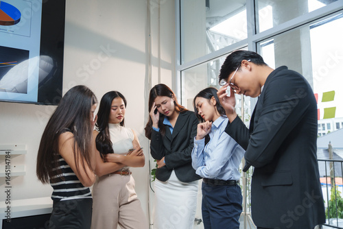 stress, frustration, business, meeting, office, teamwork, problem, challenge, worry, difficulty, pressure, bankruptcy, burnout, sleepy, concern, corporate, career, anxiety, depression, sad, upset, disappointed, confused, overwhelmed, negative, emotion, expression, executive, professional, men at work, employee, colleague, businessman, businesswoman, team, group, people, adult, indoor, workplace, communication