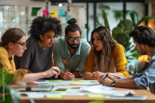 Business team meeting in office, sharing ideas, Teamwork concept, Generatie Ai.