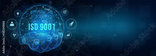 Business, technology, internet and network concept. Virtual screen of the future with the inscription: ISO 9001. 3d illustration