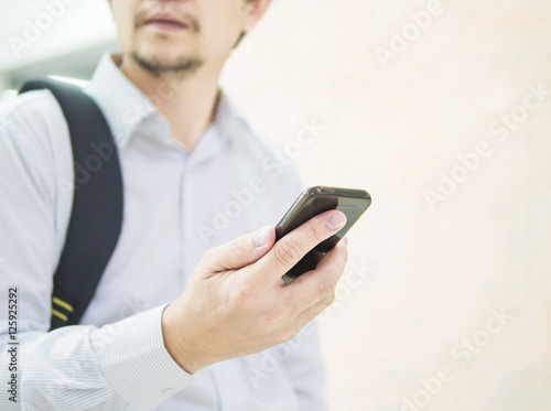 business, 1, travel, people, person, bag, young, phone, asian, mobile, man, lifestyle, technology, male, urban, photogenic, happy, message, businessman, walking, professional, aerodrome, terminal, thai, smart, businessman, using, smartphone, text message, texting