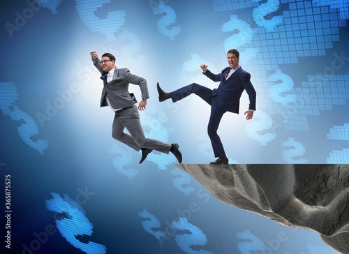 agreements, betray, betrayal, business, businessman, career, cheating, cliff, compete, competition, challenger, conflict, corporate, corruption, crime, danger, deceit, deception, depression, dismissal, dismissed, employee, envy, bankruptcy, fired, layoff, man, manager, metaphor, mountain, partner, people, pushing, redundancy, risk, rival, rivalry, rock, termination, treachery, unemployed, unemployment, work, men at work